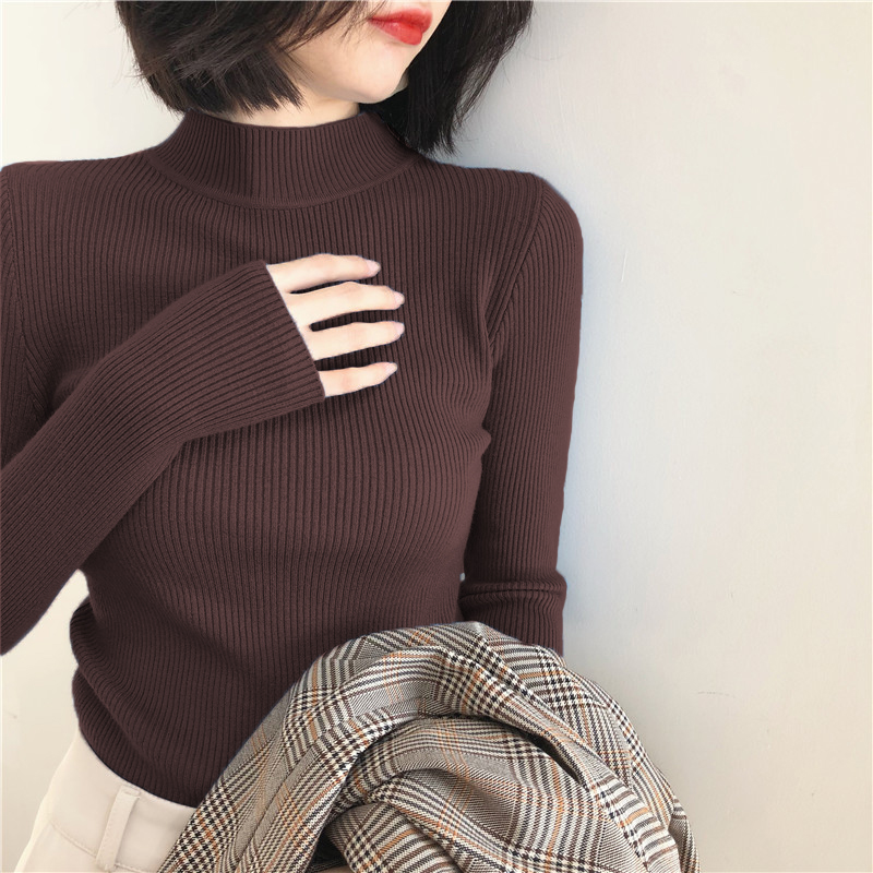 螺纹上衣 雾霾蓝紧身针织内搭毛衣洋气韩版 半高领打底衫 女秋冬新品