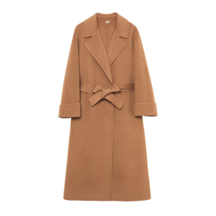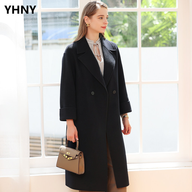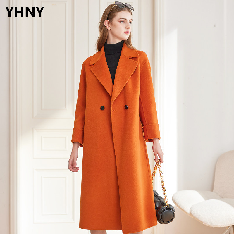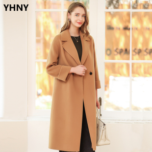 羊毛呢外套 宽松双排扣中长款 高端双面羊绒大衣女2022秋冬新款 韩版