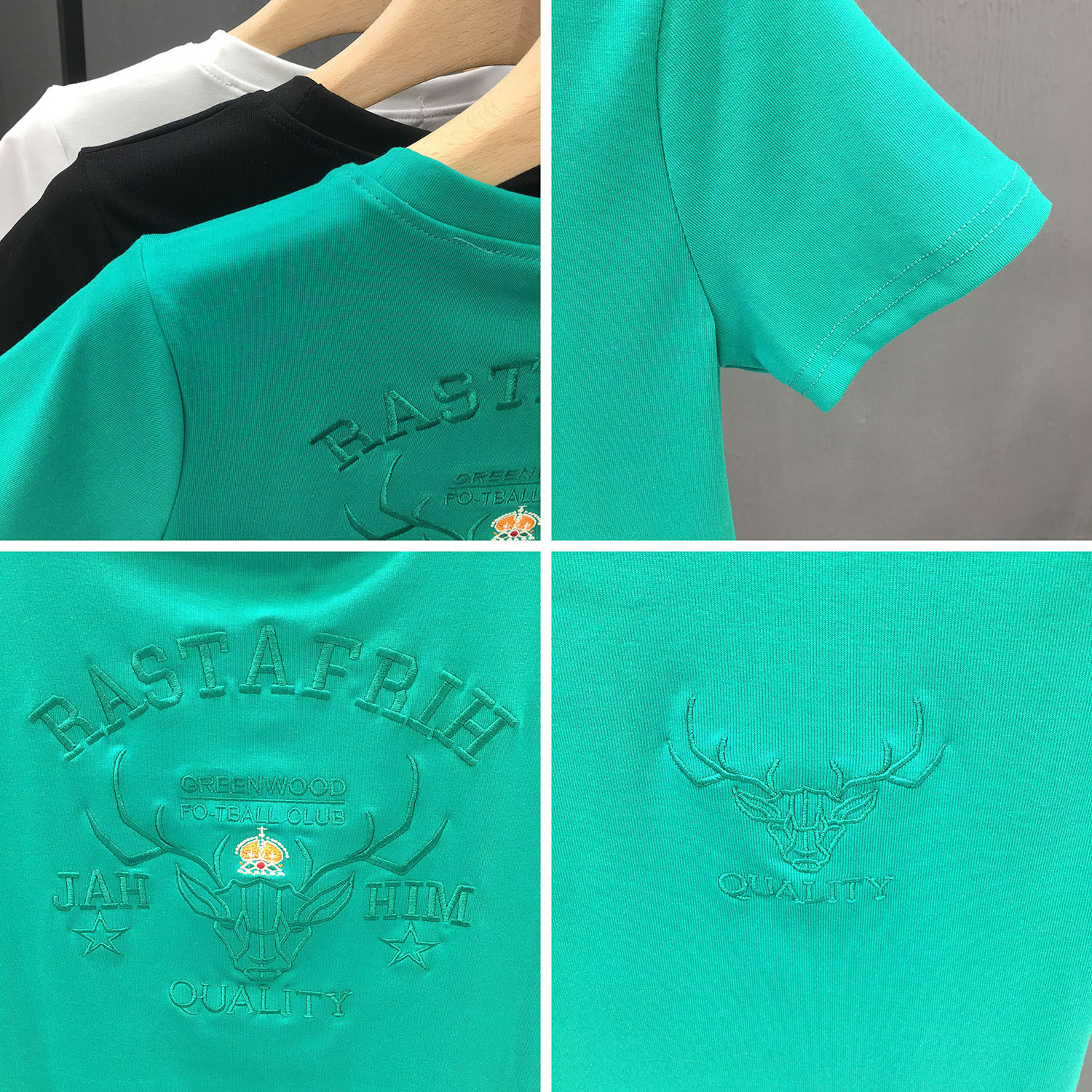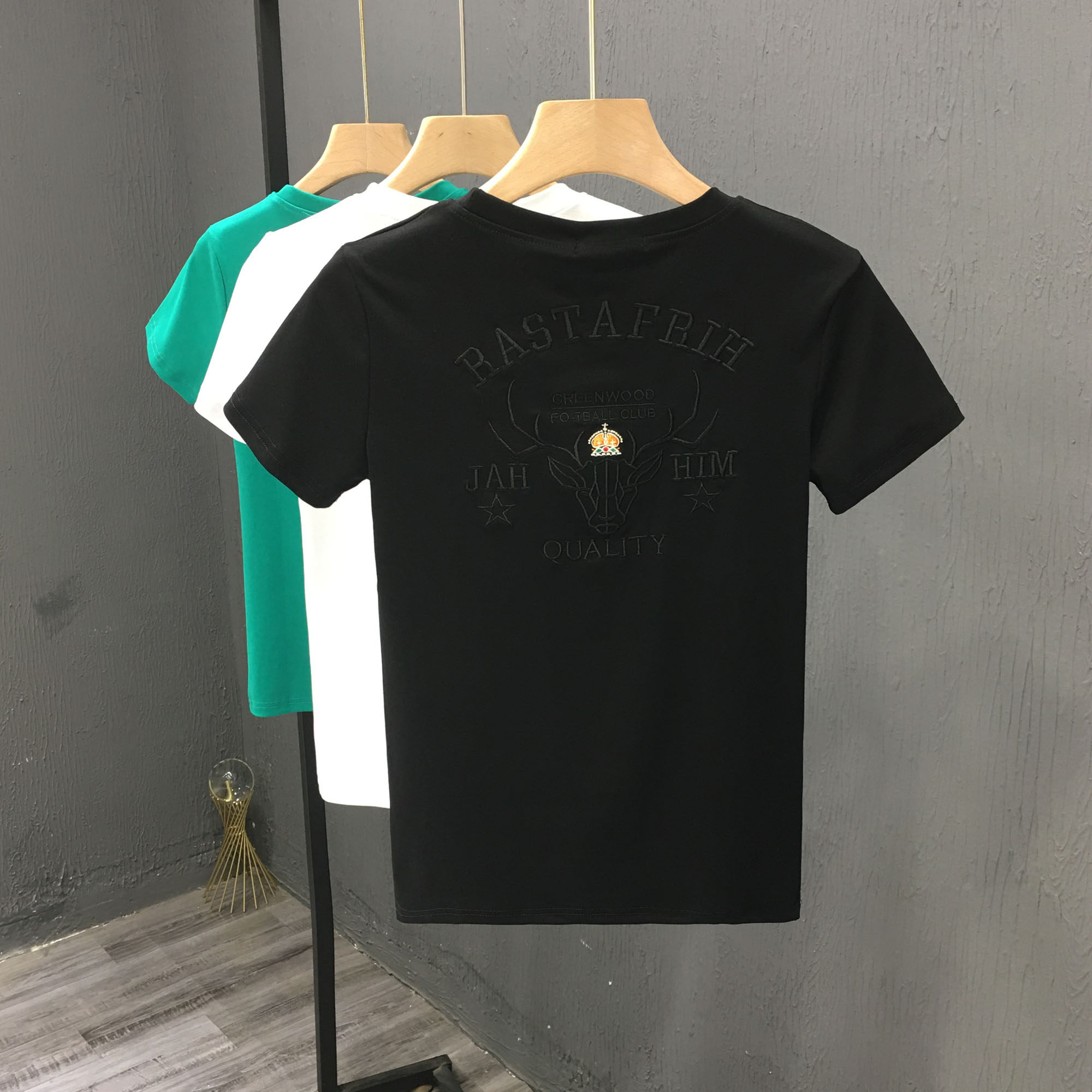 夏季 新款 男士 小鹿刺绣半袖 T恤男装 修身 纯棉短袖 休闲体恤潮牌t 韩版