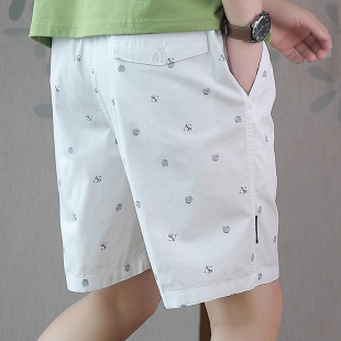 夏季 薄款 五分裤 2025新款 子男款 男士 外穿5分中裤 白色 纯棉休闲短裤