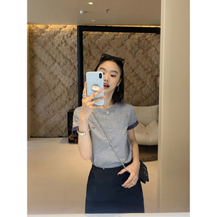 T恤女夏季 刺绣撞色短袖 正肩圆领简约纯棉上衣 灰调风尚 pusumede