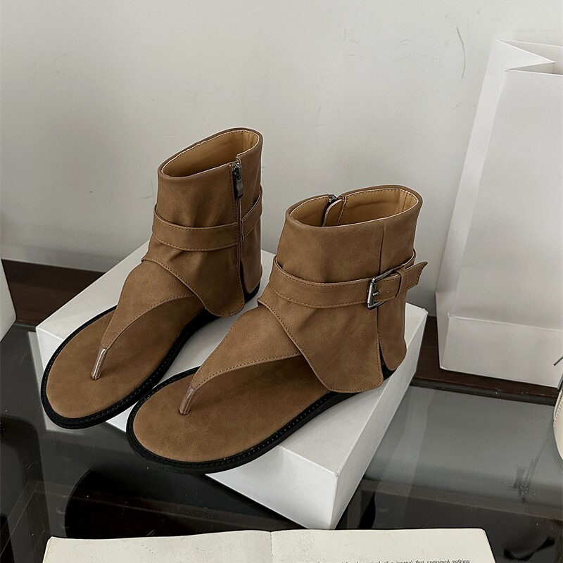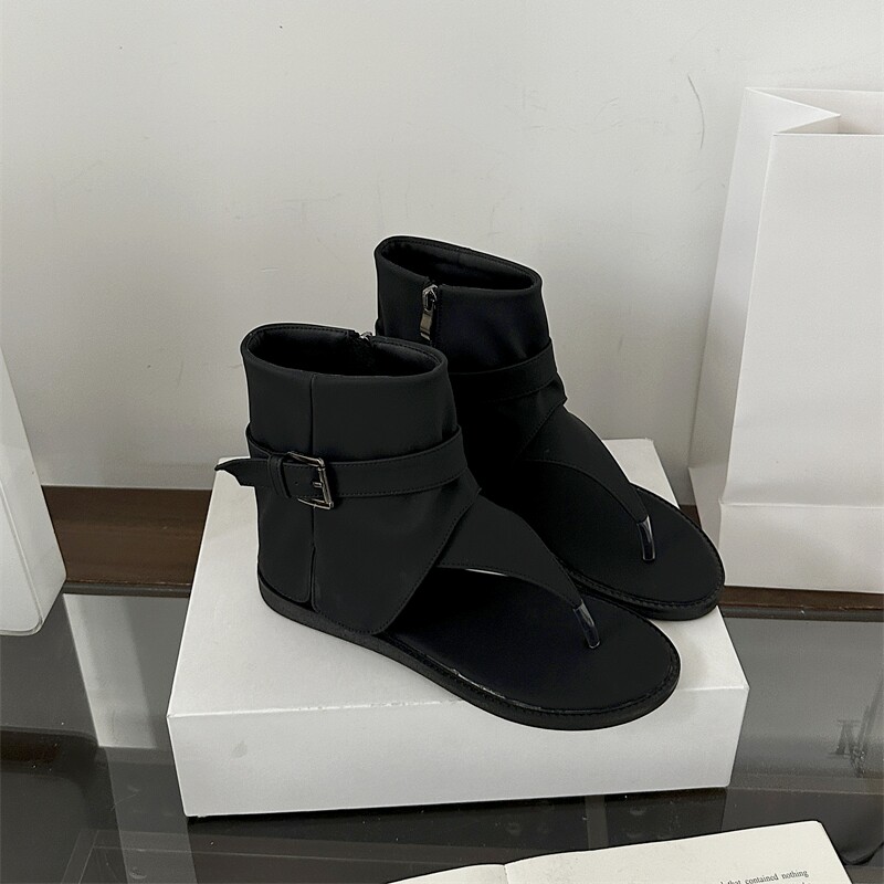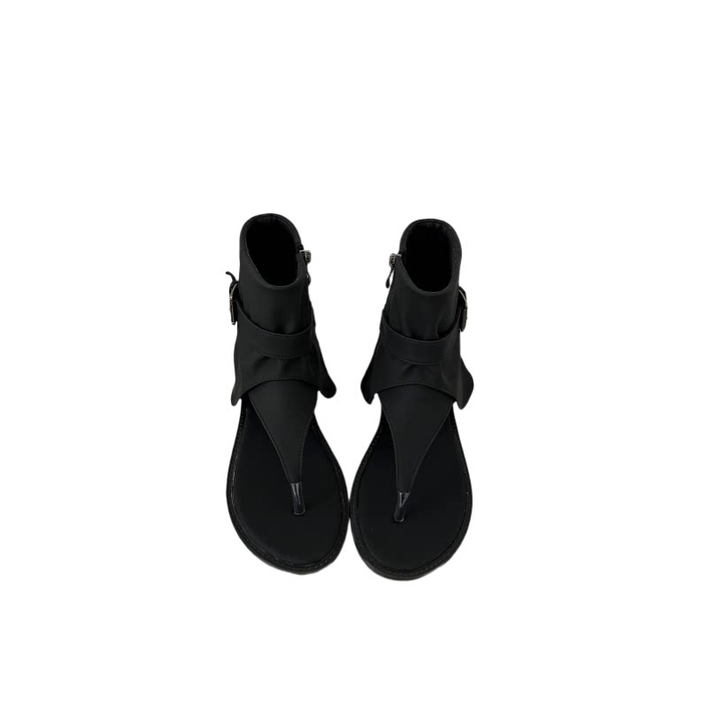 新款 女2025夏季 平底罗马凉靴低跟宽松库管女靴子 人字夹趾凉鞋 韩版