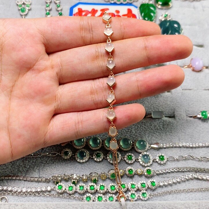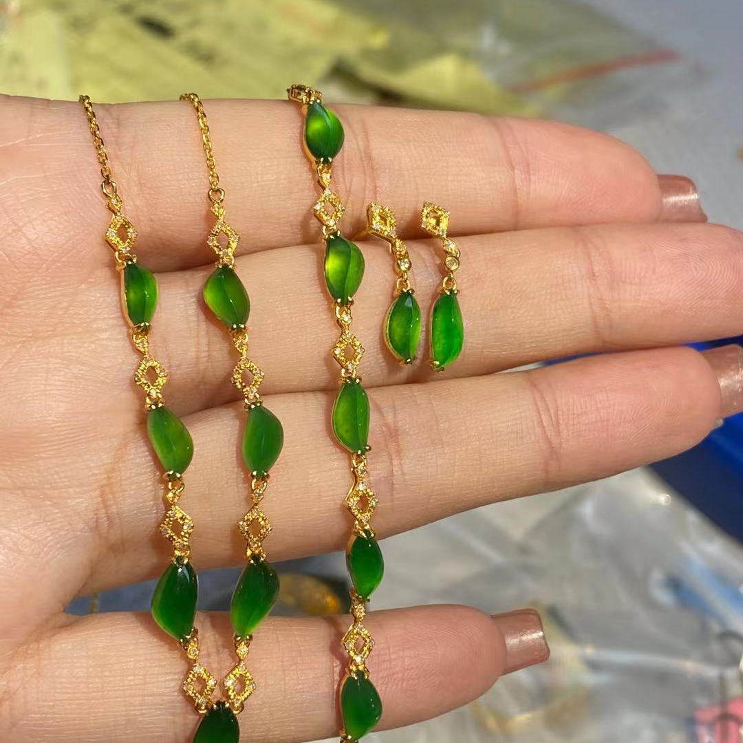 直播支付专拍链接不是商品时尚 百搭翡翠A货银镶戒指耳钉项链手链