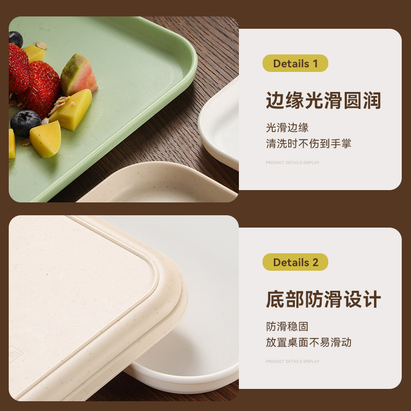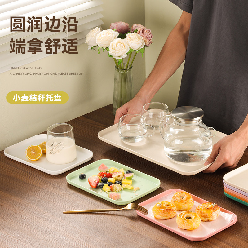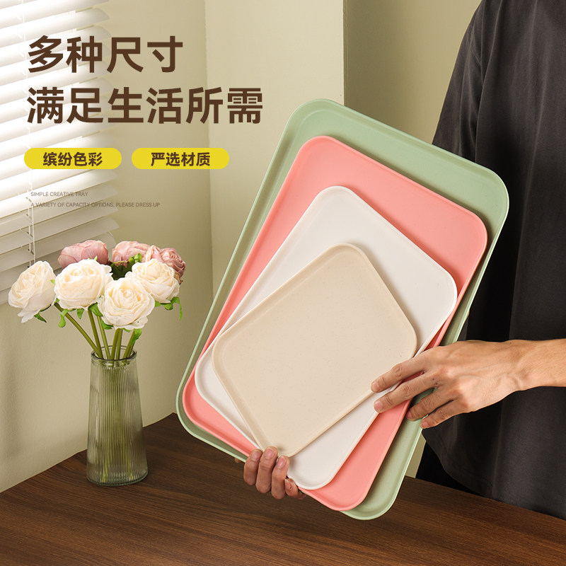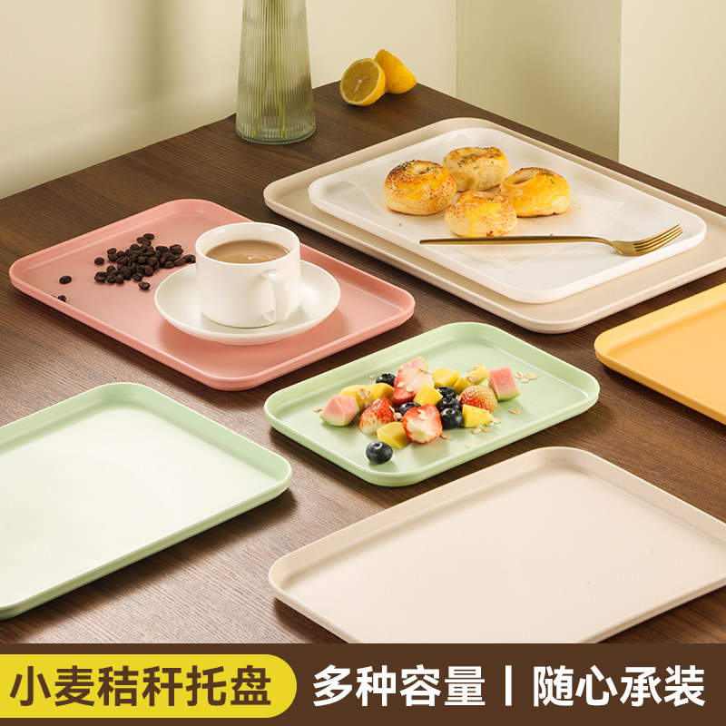 小麦托盘餐盘西餐高级感轻奢家用菜盘沥水托盘长方形塑料茶盘托盘