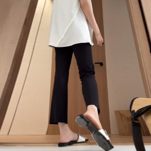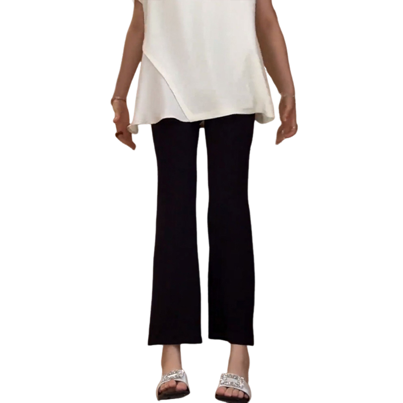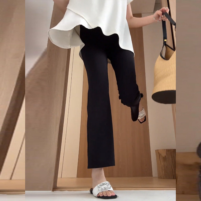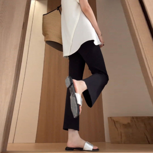 小个子145cm显高冰丝九分喇叭裤 女高腰显瘦八分150显高黑色微喇裤
