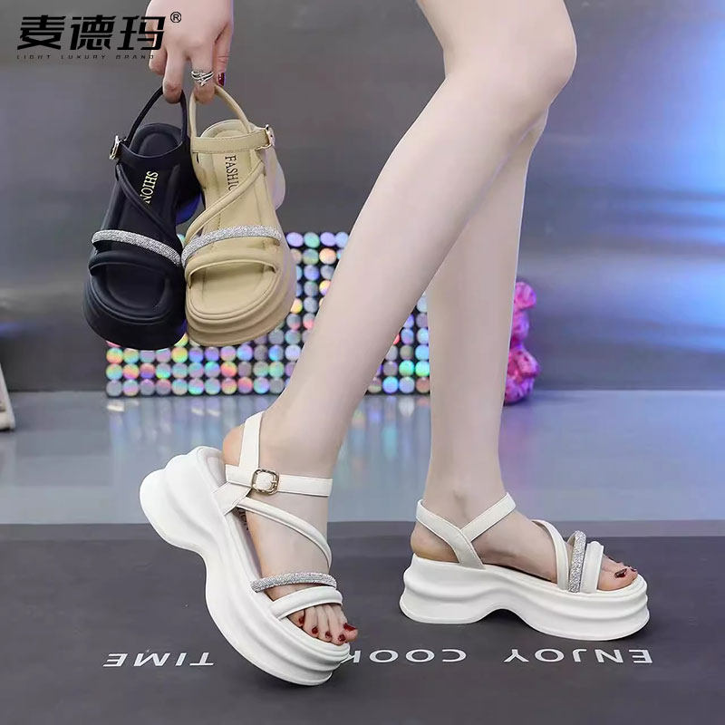 松糕坡跟运动 爆网红厚底时装 欧货内增高跟罗马凉鞋 女士2025年夏季