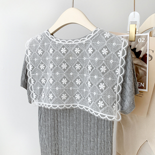 春夏围巾衣领花边 时尚 花朵刺绣蕾丝外搭小披肩女百搭装 饰坎肩新款