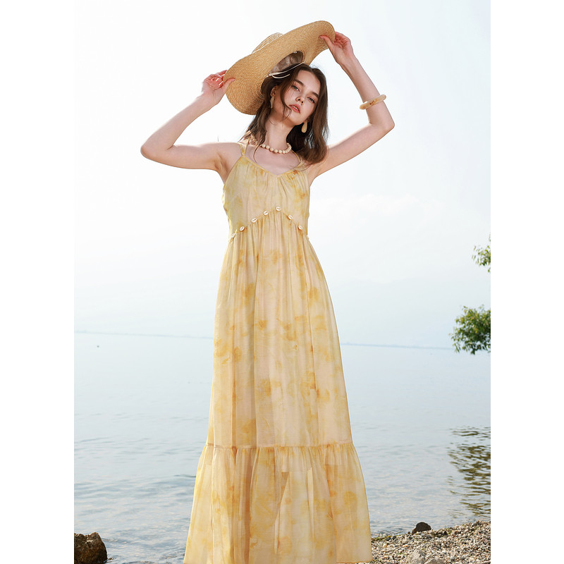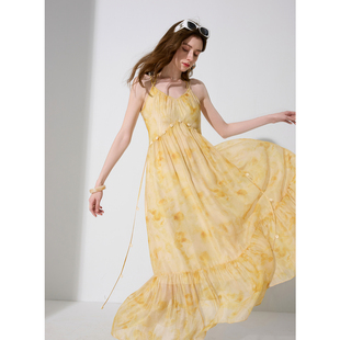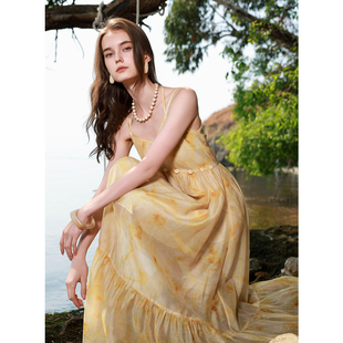 尤克菲儿 长裙气质连衣裙 原创高定轻奢网布印花优雅秋季
