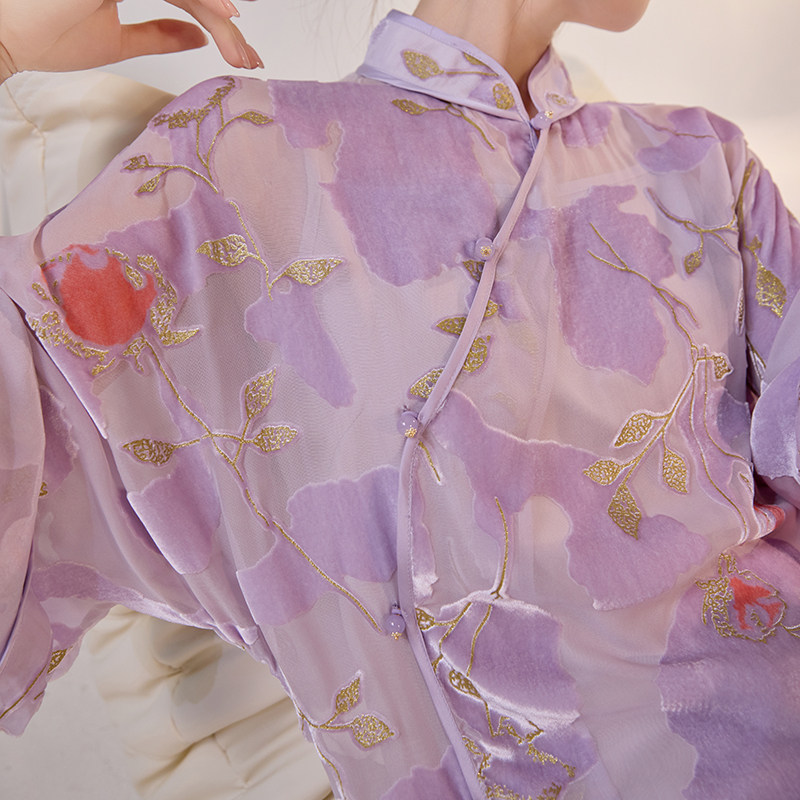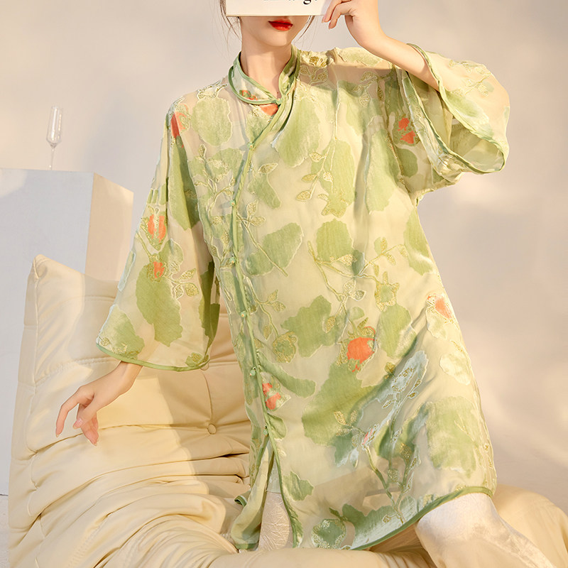 高级显瘦桑蚕丝上衣 新中式 时尚 设计盘扣衬衫 M5123 轻国风重工长款