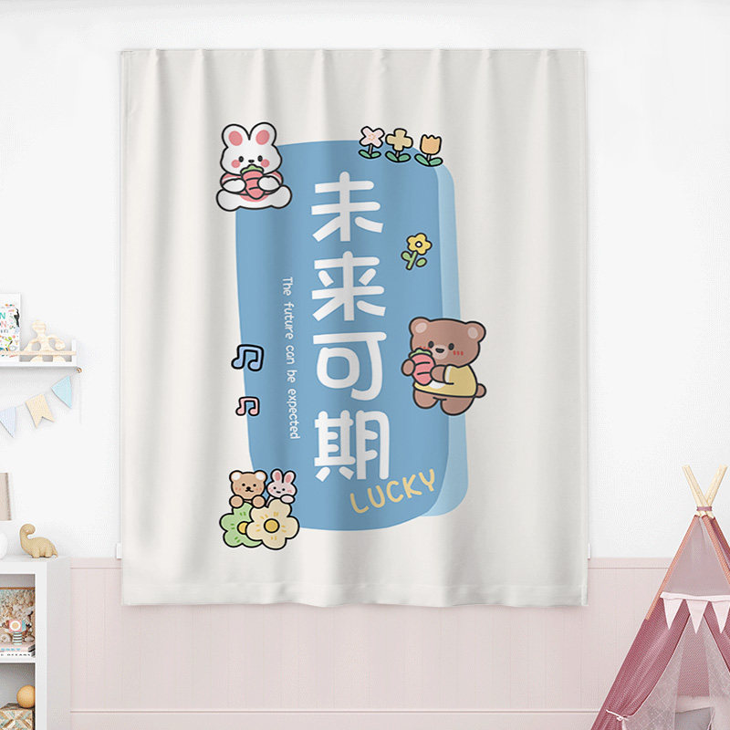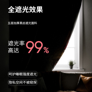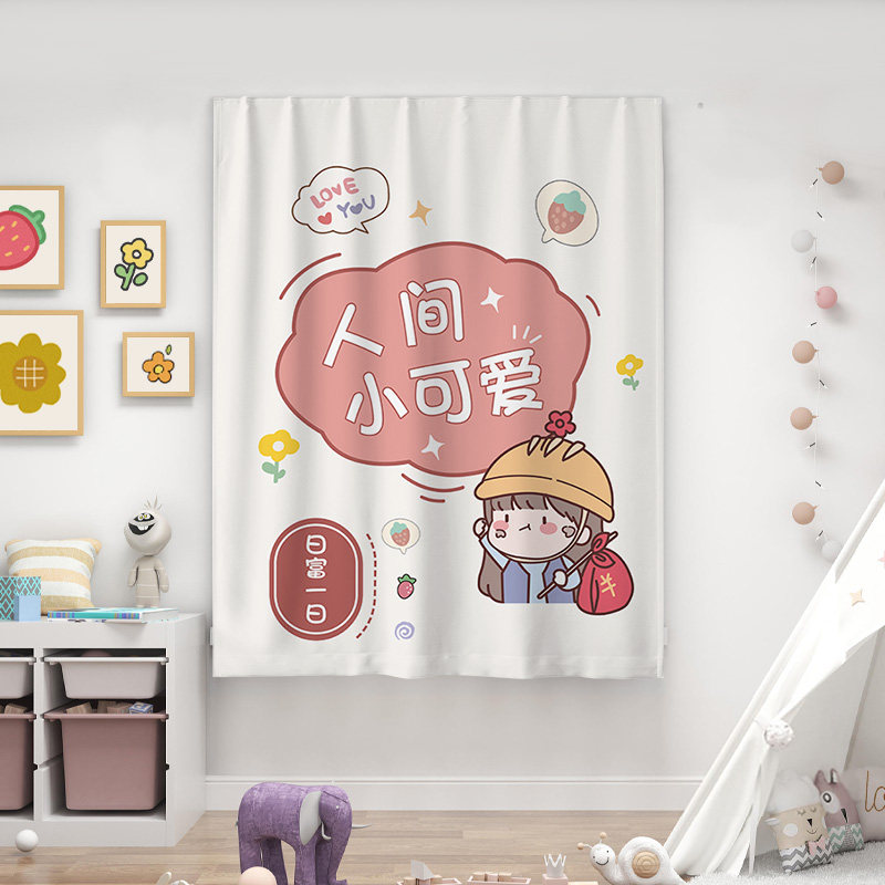 魔术贴全遮光窗帘儿童房免打孔安装 卧室小窗户简易遮阳帘 2023新款