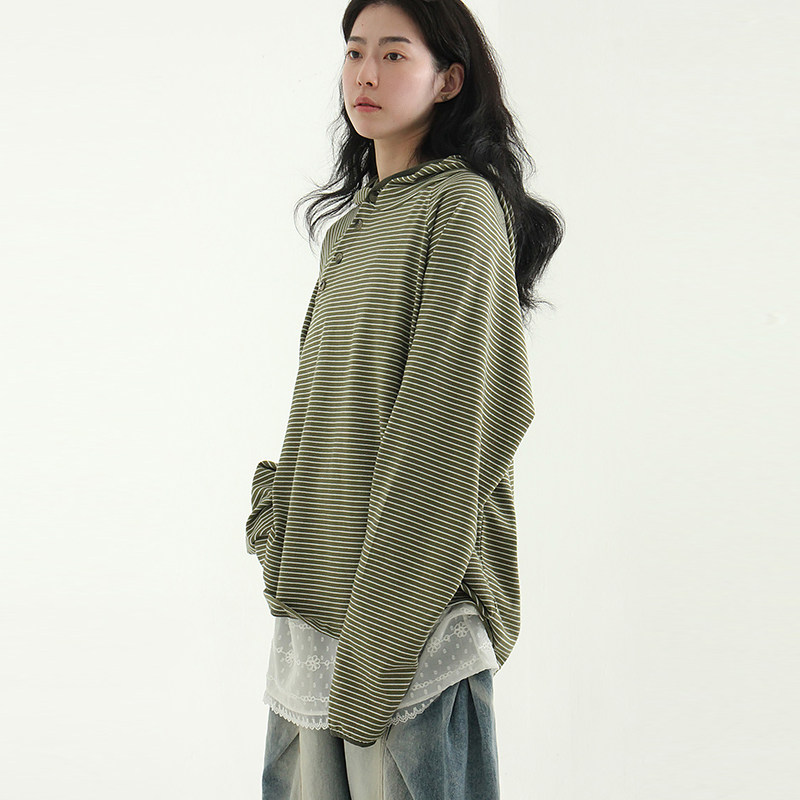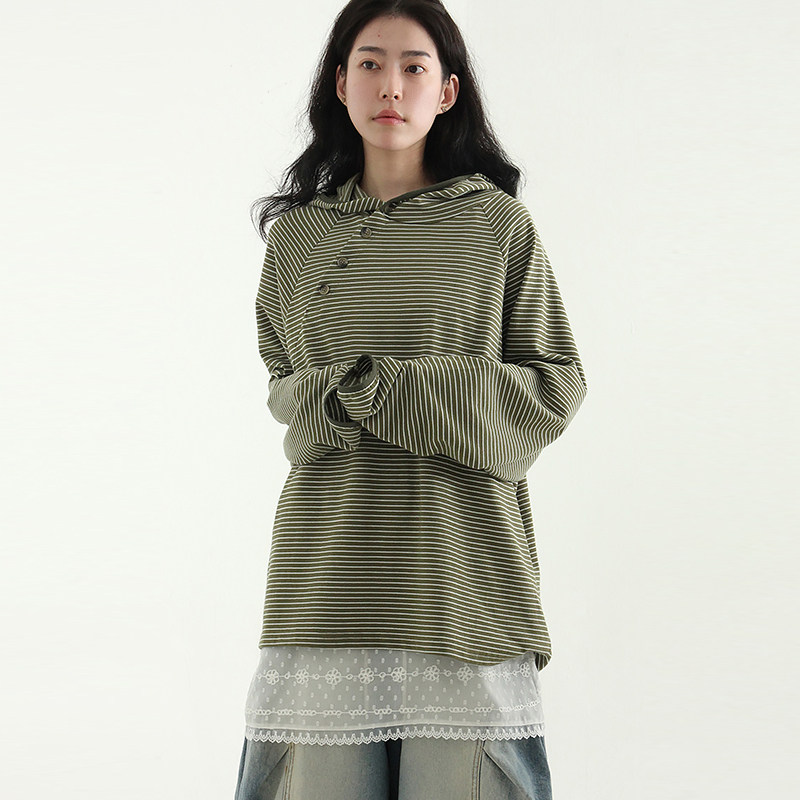 stripe 帽衫 unisex hoody neck button oblique 25A 韩国代购