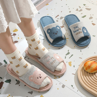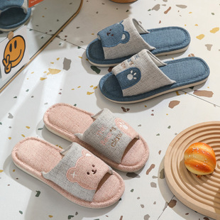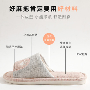 亚麻布拖鞋 女夏情侣一对春秋居家用可爱木地板软底棉麻吸汗防臭男