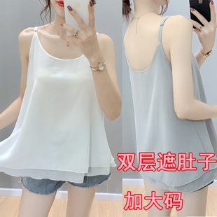 宽松吊带背心女内搭胖mm大码 200斤遮肚子细绳u领假两件上衣雪纺衫