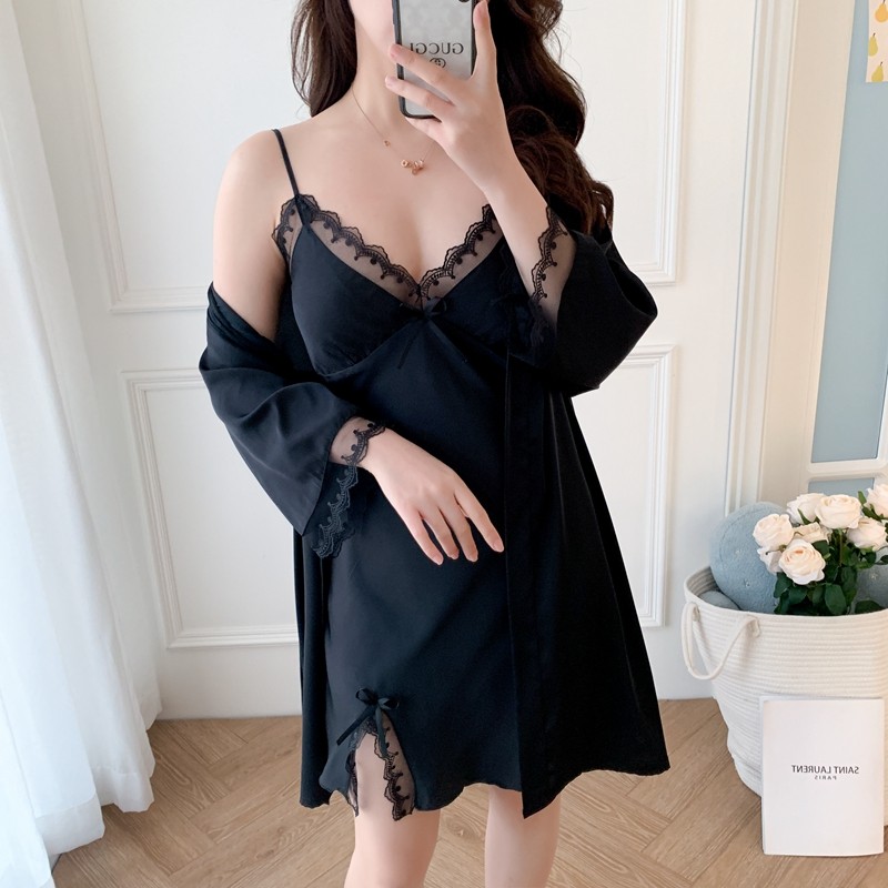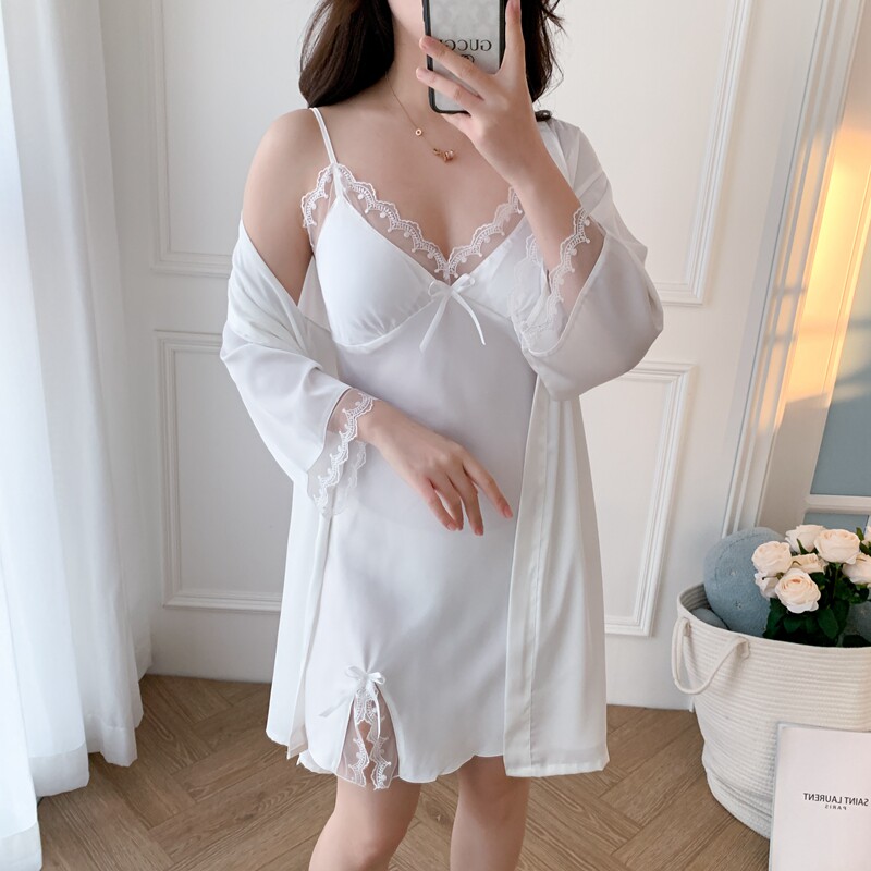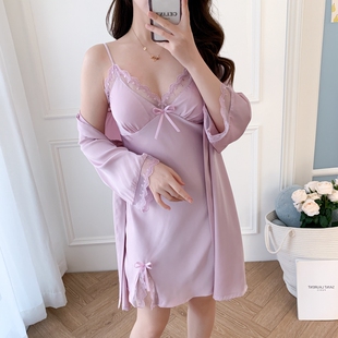 新款 2025年夏季 吊带睡裙睡袍两件套带胸垫 性感V领薄款 睡衣女夏款