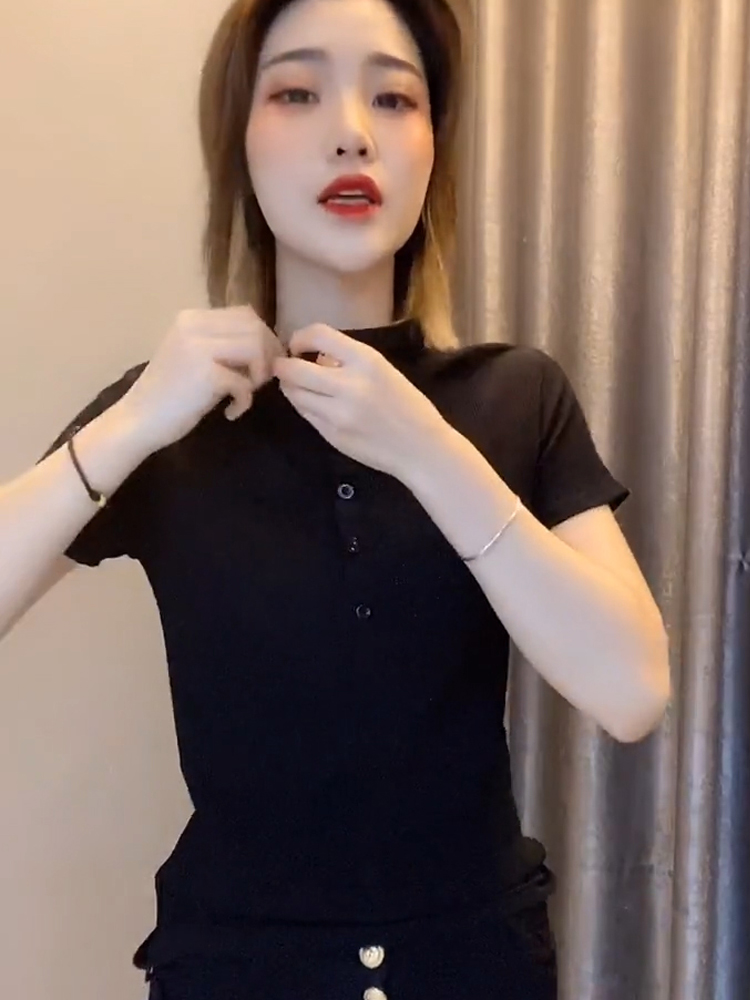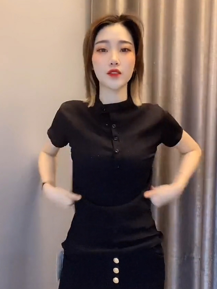 修身 黑色雪纺衫 夏季 短袖 心机设计感小众微透衬衣 t恤女2025年新款