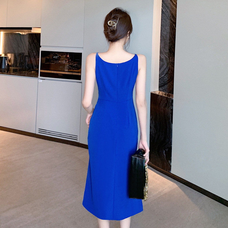 克莱因蓝吊带连衣裙女裙蓝色气质别致宝蓝色 高级感质感裙子夏季