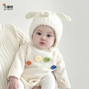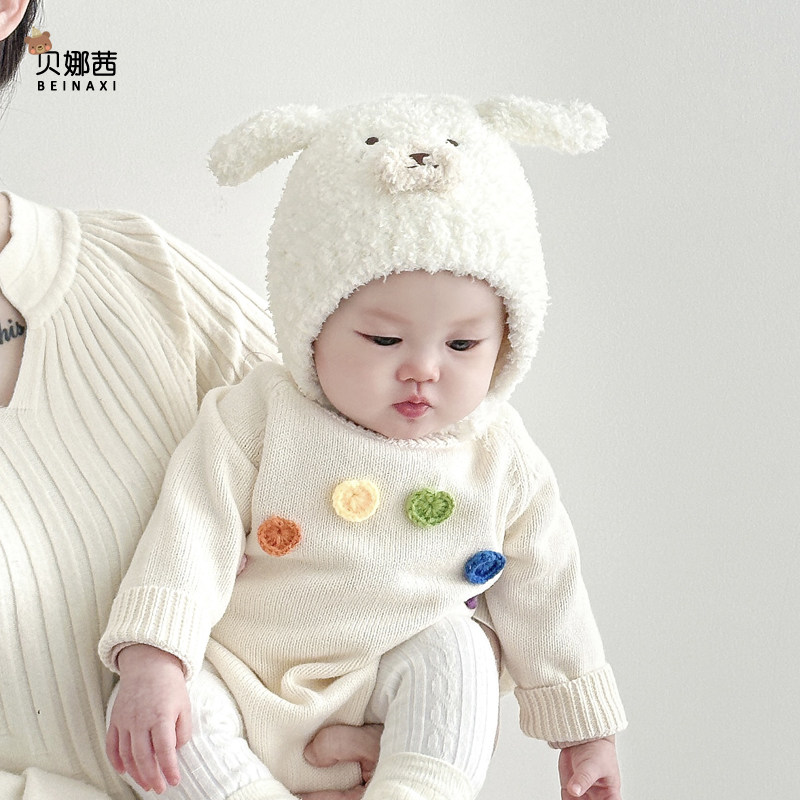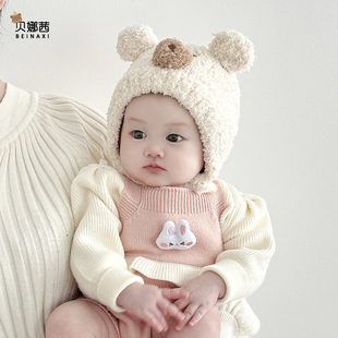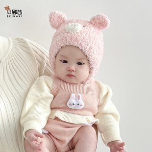 婴儿帽子秋冬季 宝宝男可爱针织帽婴幼儿护耳小月龄冬天保暖毛线帽