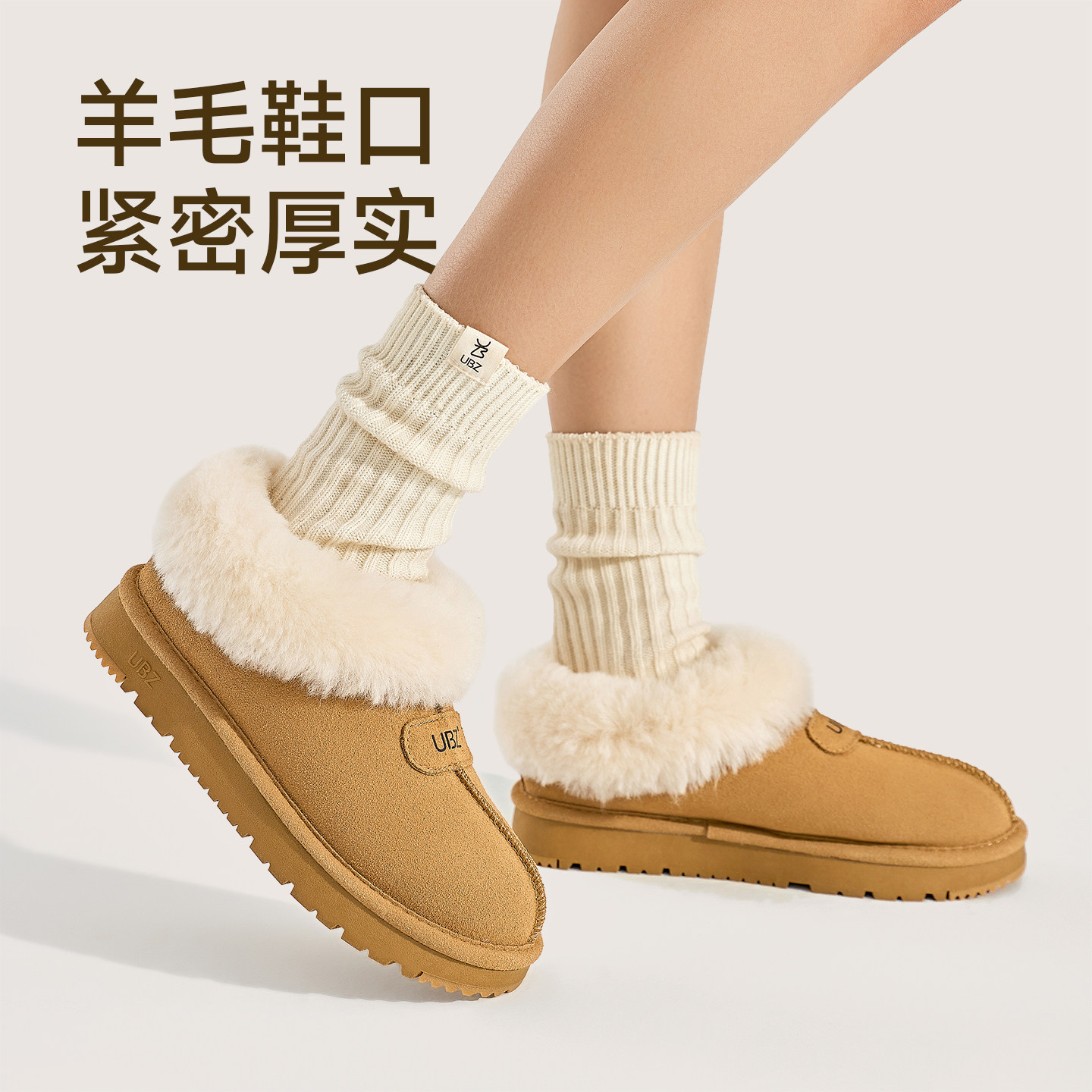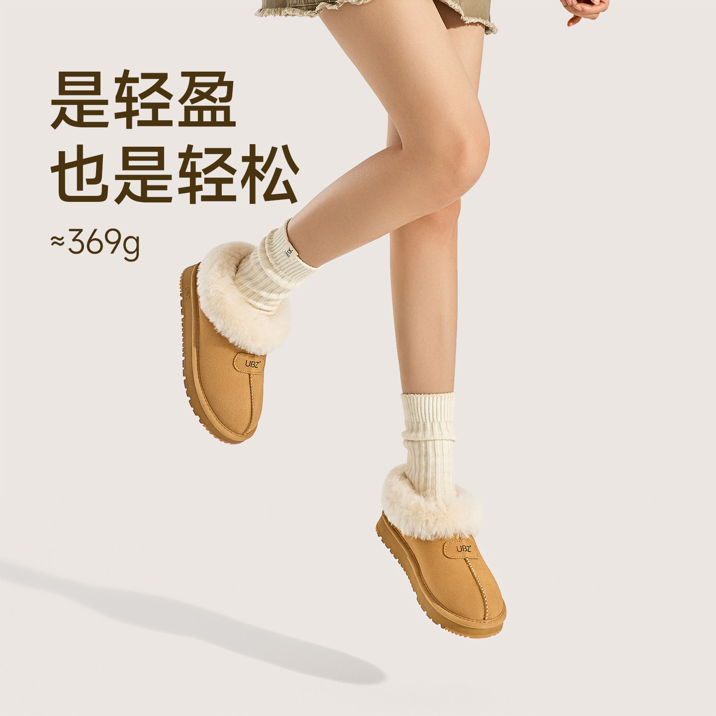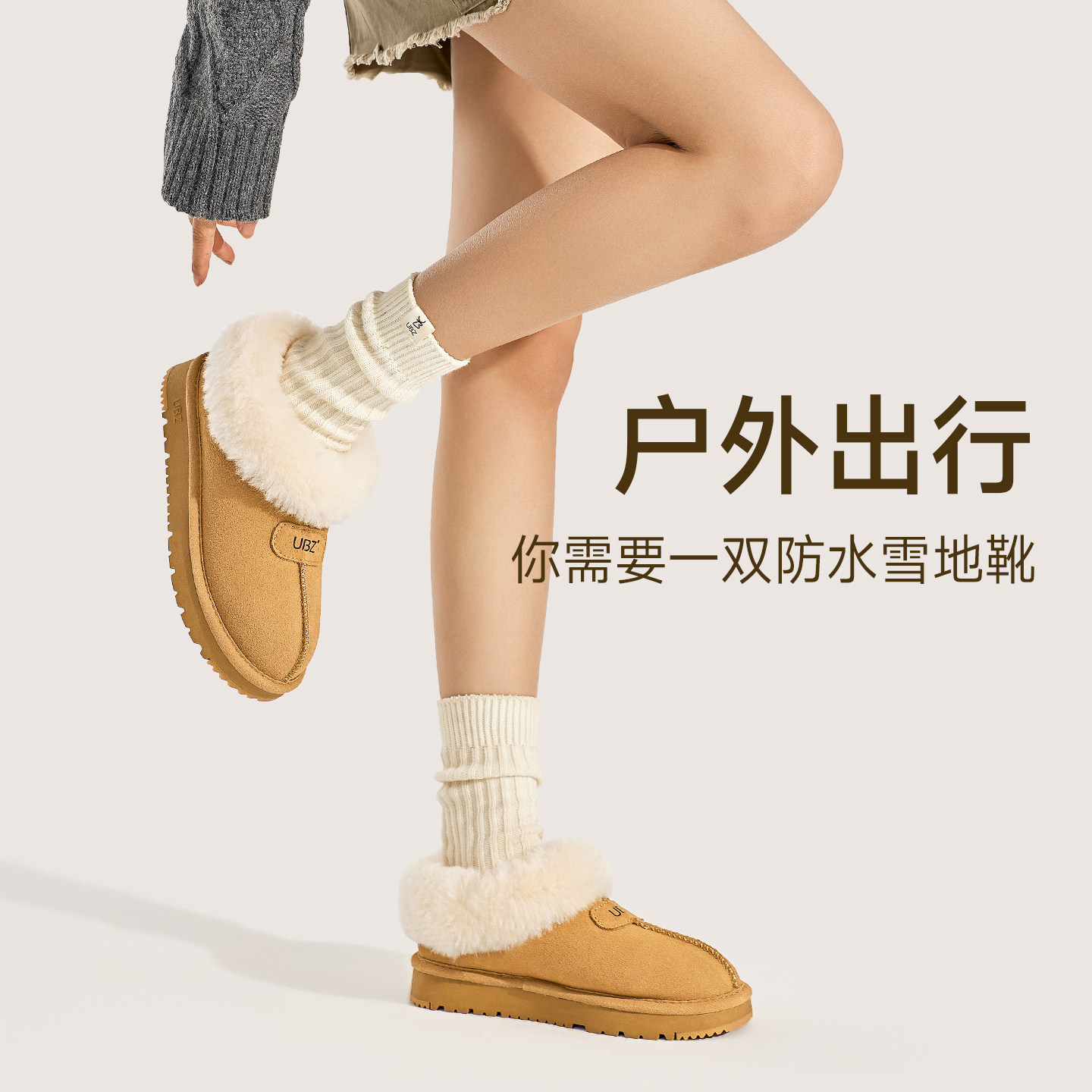 毛毛鞋 UBZ 厚底羊毛口加厚保暖棉鞋 新款 加绒雪地靴女士2025年冬季