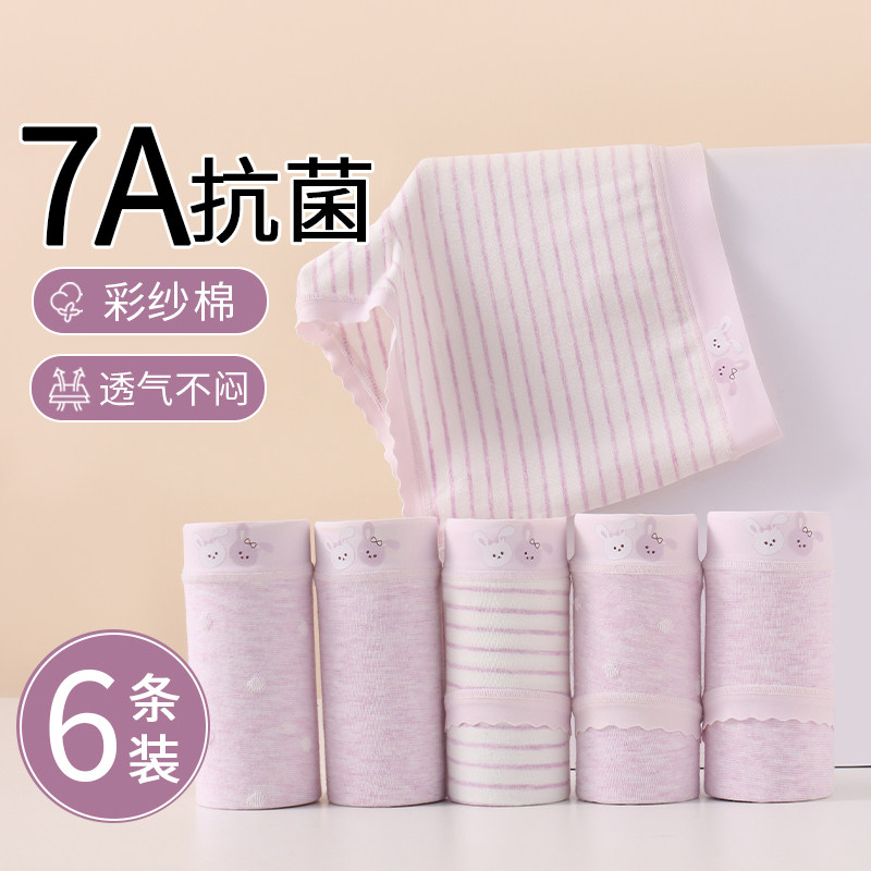 儿童内裤 纯棉中大童平角发育期小学生女孩三角 女宝宝彩棉四角短裤