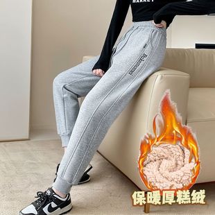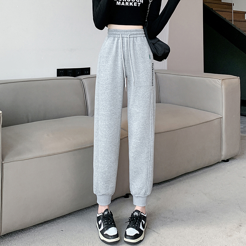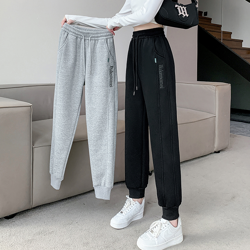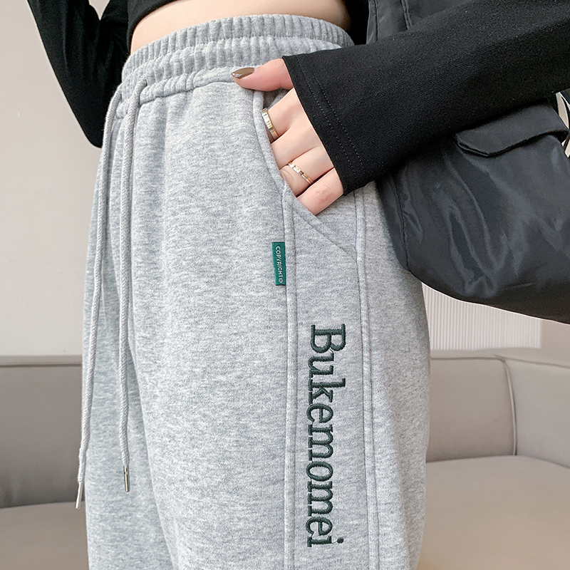 刺绣拼接宽松显瘦卫裤 加绒加厚特厚保暖哈伦裤 韩版 新款 女2024冬季