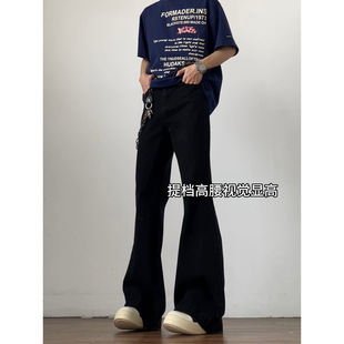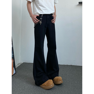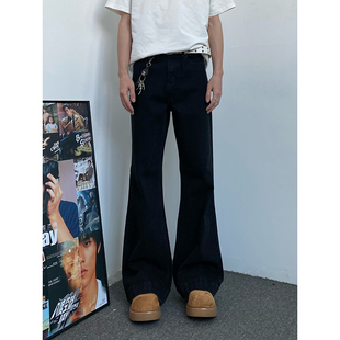子长裤 高街宽松直筒喇叭裤 秋冬 男cleanfit美式 水洗黑色微喇牛仔裤