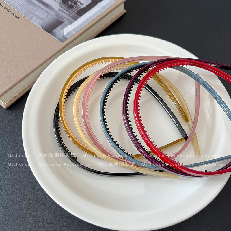 米仙恩韩国进口France醋酸发箍法式 日常发卡纯色简约钢丝防滑头箍