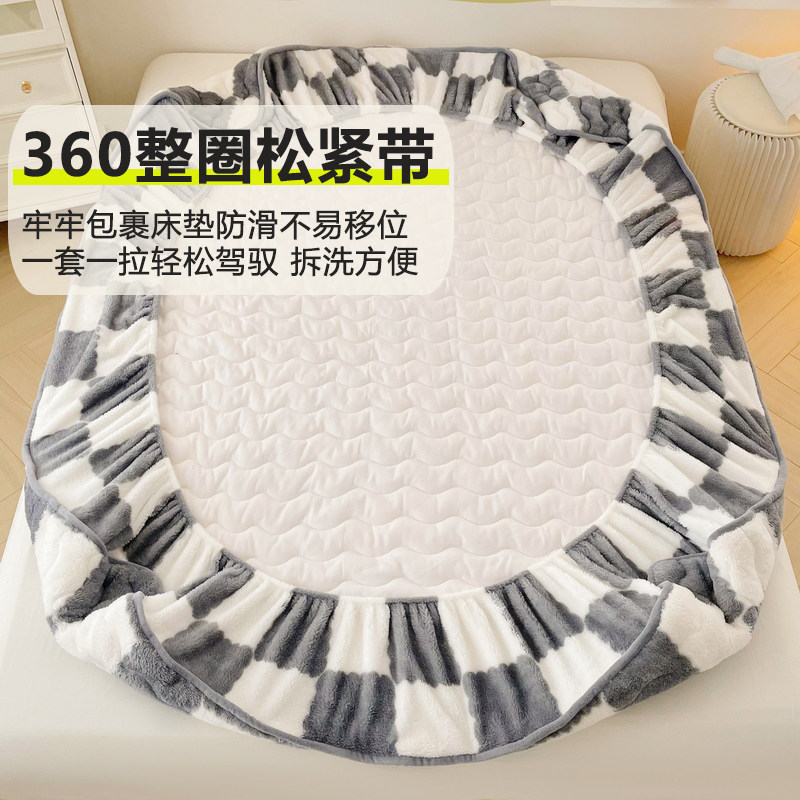 A类卡通印花冬季 加绒床罩床垫保护罩 加厚牛奶绒床笠单件2025新款