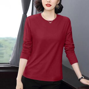 妈妈打底衫 小衫 上衣 t恤女春秋2025女士秋衣洋气春装 纯棉高档长袖