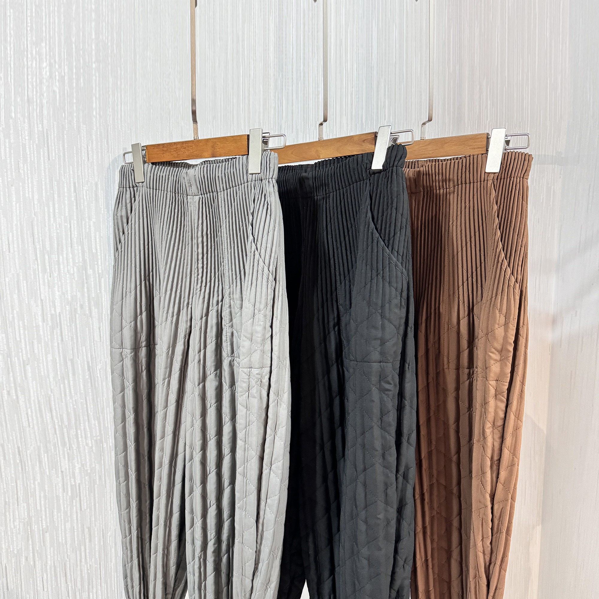 棉裤 褶皱一生菱格绗缝夹棉休闲裤 宽松显瘦纯色萝卜裤 新款 2025冬季