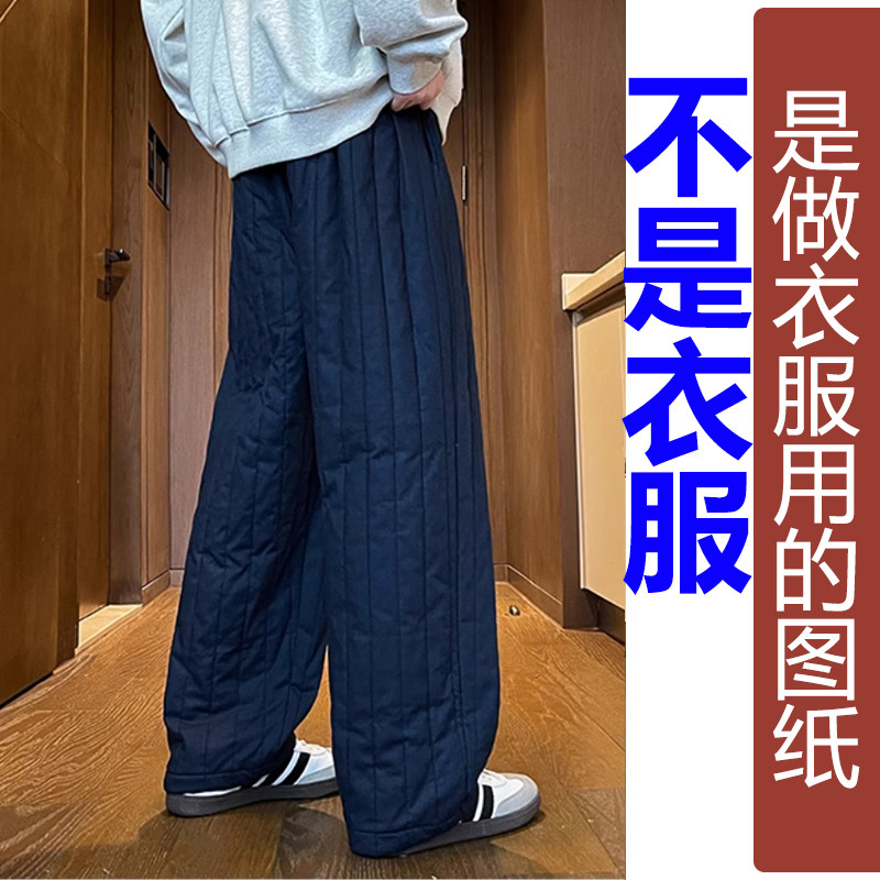 长裤 QW276冬季 新款 女纸样 加工定制图纸 棉麻绗竖格夹棉休闲直筒裤