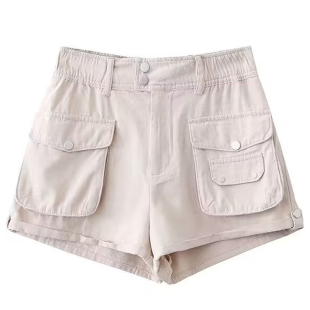 热裤 短裤 纯色多口袋工装 春夏欧美风复古休闲百搭高腰宽松显瘦薄款