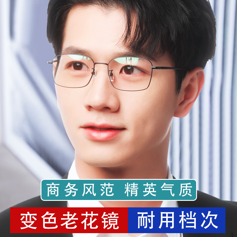 纯钛老花镜高清防蓝光抗辐射疲劳男士 老人眼镜超轻镜片100度阅读