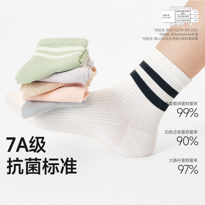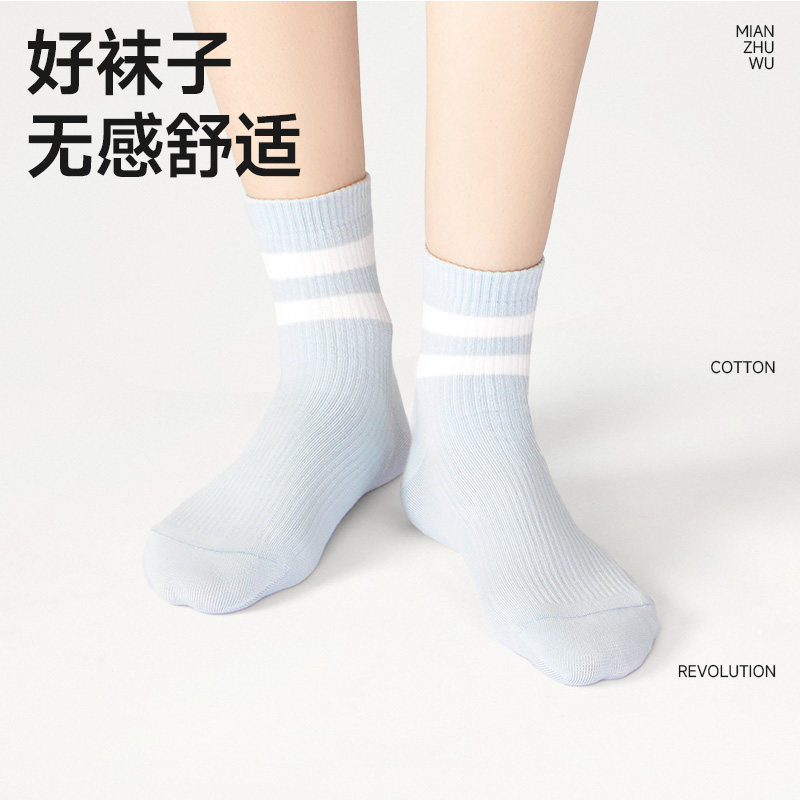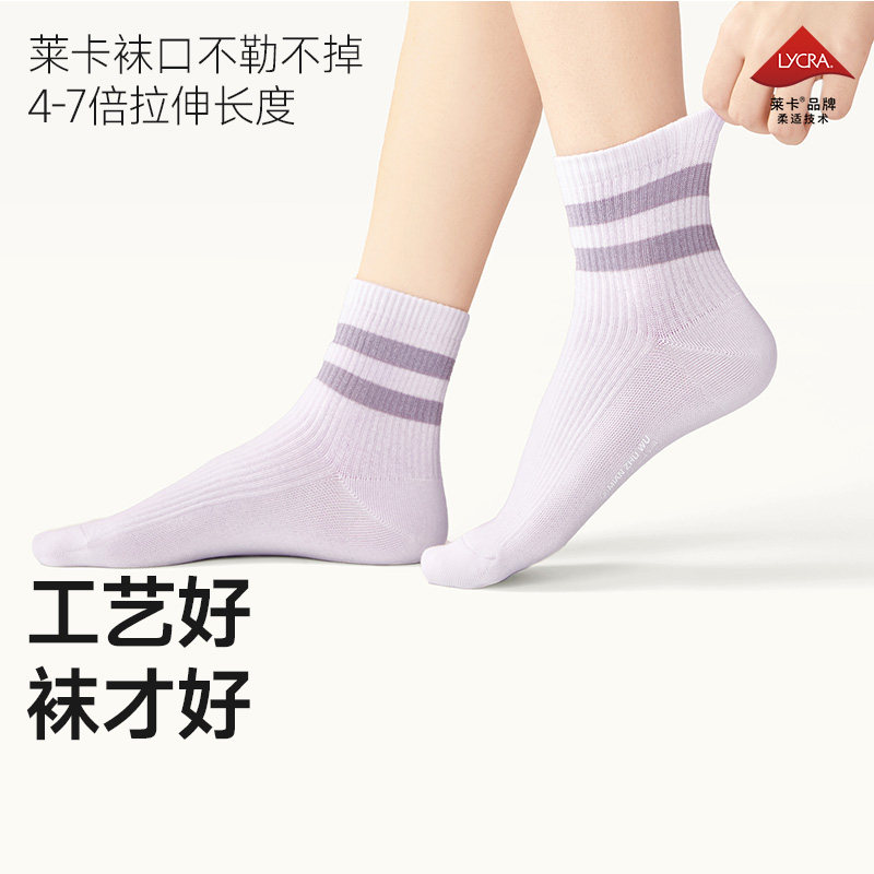 春款 袜子女款 棉袜青少年2026新款 薄款 防臭短筒袜 条纹运动中筒夏季