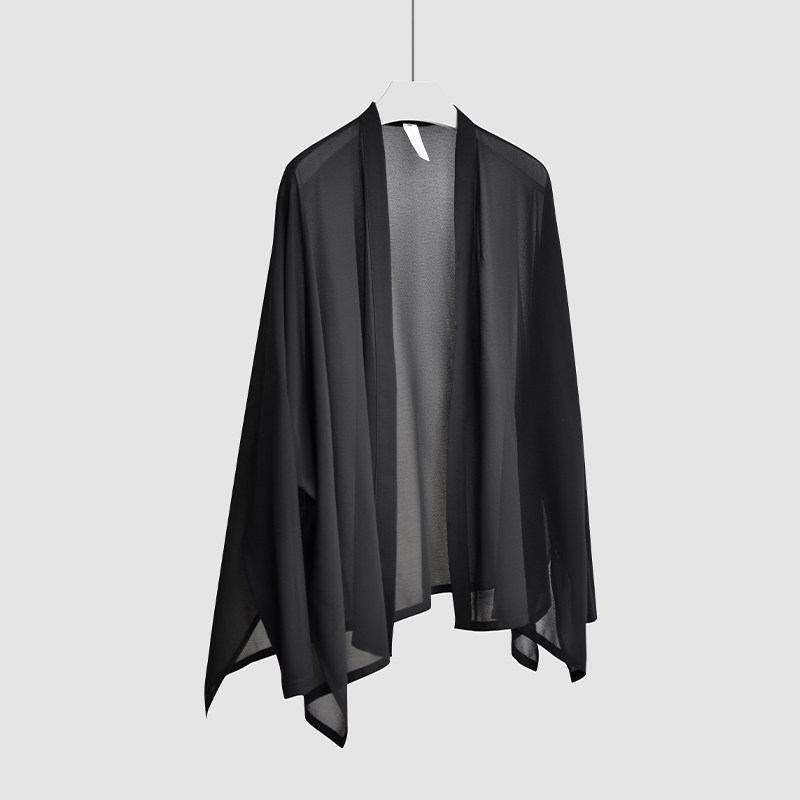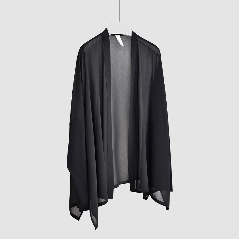 黑色宽松桑蚕丝披肩外搭慵懒风大码 100%真丝防晒开衫 外套女夏薄款
