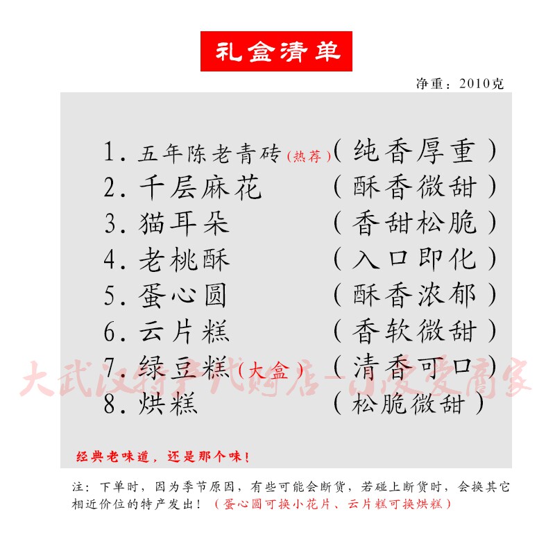 正品 武汉汪玉霞五年陈老青砖茶礼盒绿豆糕老桃酥云片糕小花片烘糕