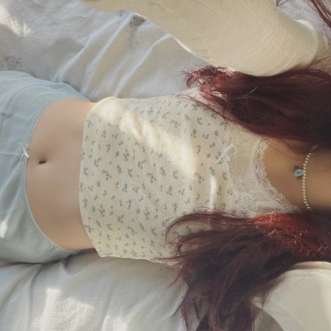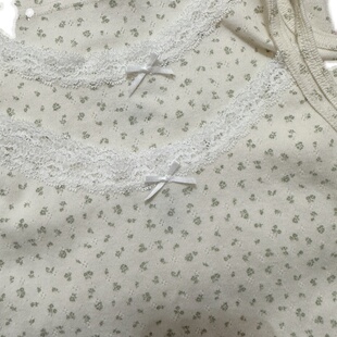 Brandy 背心 Girl纯欲风蝴蝶结绿色bm碎花小吊带上衣女内搭短修身