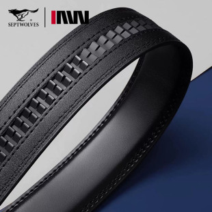 正品 带3.5宽带条 七匹狼无扣头皮带男自动扣真皮不带头腰带牛皮裤