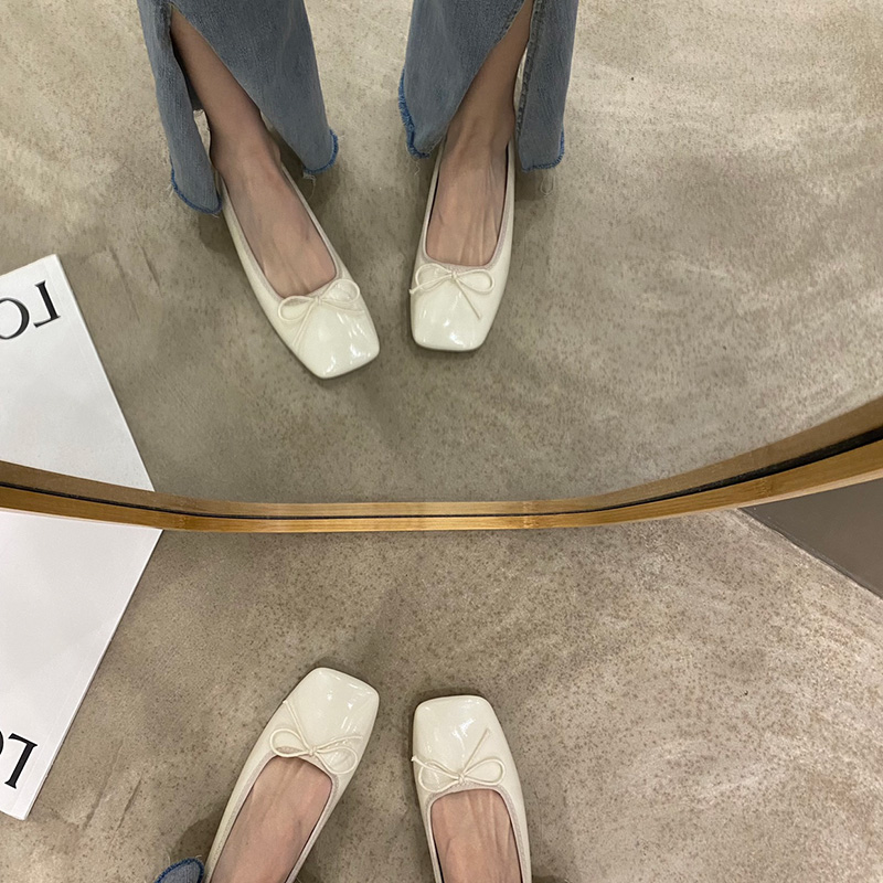 通勤浅口百搭奶奶鞋 蝴蝶结方头平底瓢鞋 女2025春秋新款 小香风单鞋