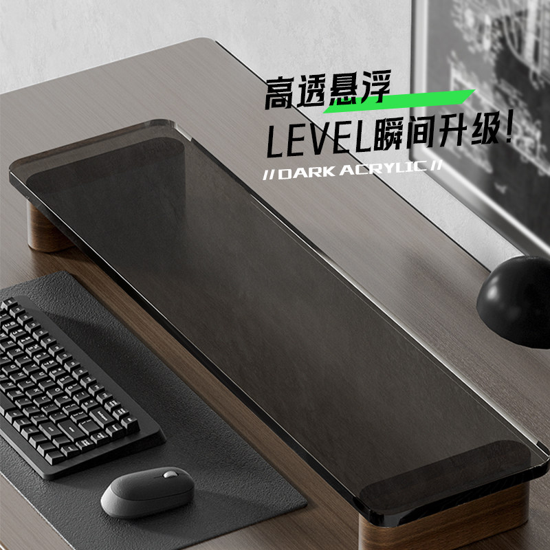 悬浮感透明深色亚克力桌面显示器增高架简约桌面支架办公桌书桌收纳扩容支架笔记本电脑垫高支架屏幕升高架