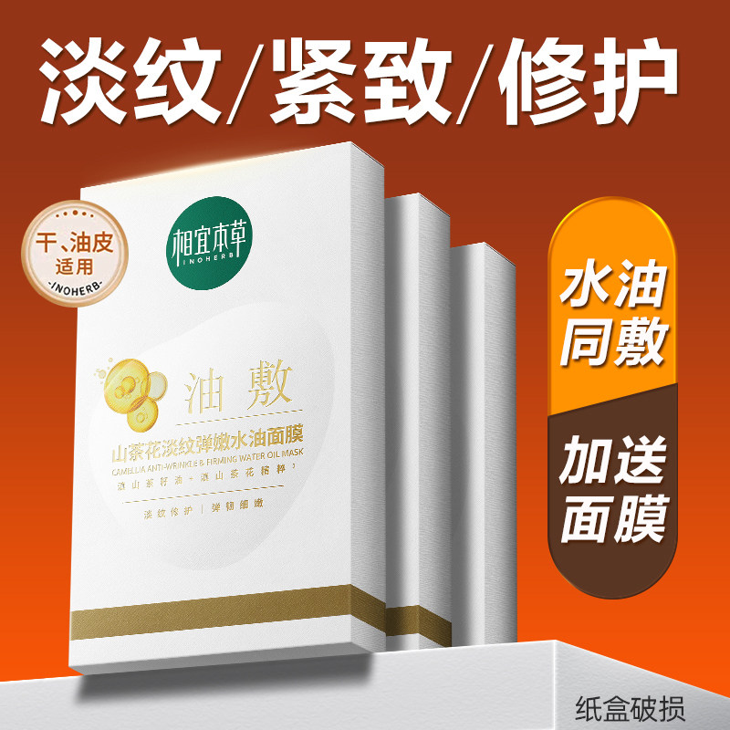 相宜本草山茶花油敷膜面膜淡纹紧致补水保湿 提亮肤色磨损授权正品