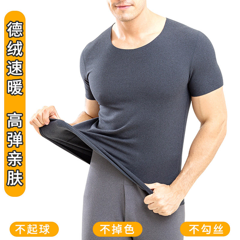 内穿秋冬季 内穿打底衫 T恤男圆领加绒加厚V领长袖 2件德绒保暖短袖