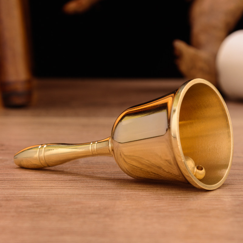 纯黄铜铃铛手摇铃铛上菜点餐厅学校上课铃活动会议提醒响声大铃