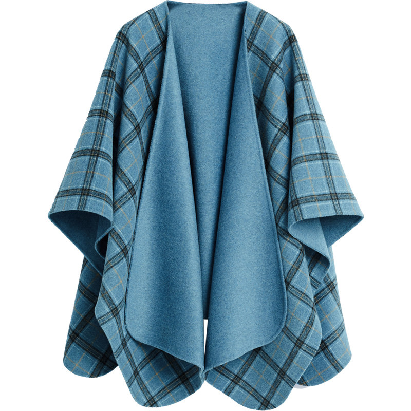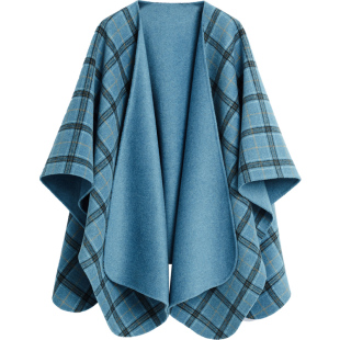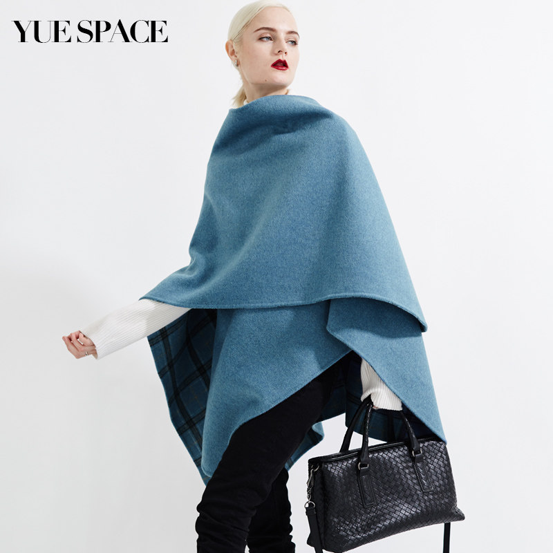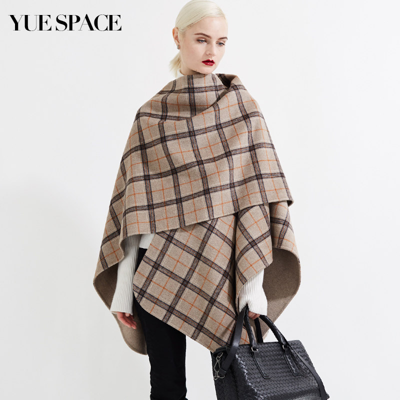 YUESPACE宽松双面毛呢外套女羊毛斗篷大衣格子两面穿时尚 秋冬无袖