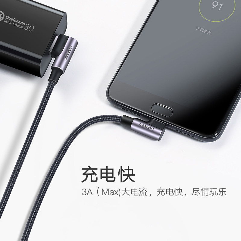 绿联Type C数据线弯头手机3A快充线通用三星vivo荣耀oppo华为P10