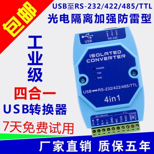 USB转串口 光电隔离型USB转rs485 接口工业级防雷 232 转换器 422