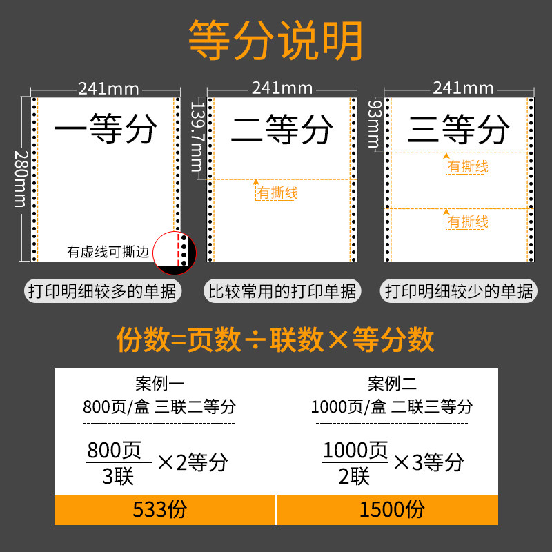 针式 五六联3联2等分发票清单送货打印机票据专用纸 电脑打印纸三联二三等分二联三联单四联二三一等分两联241