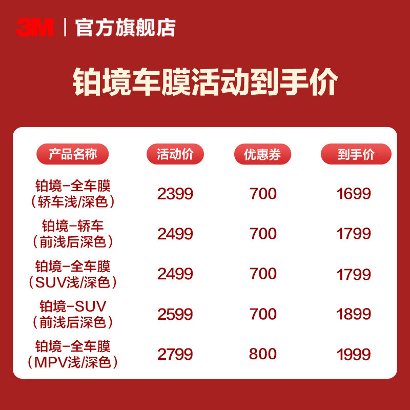 3M汽车贴膜铂境全车膜防紫外线玻璃膜隔热膜防晒膜隐私太阳膜官网