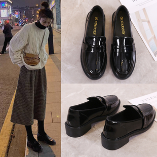 女平底浅口单鞋 英伦风小皮鞋 女新款 BeauToday花园舞会黑色乐福鞋