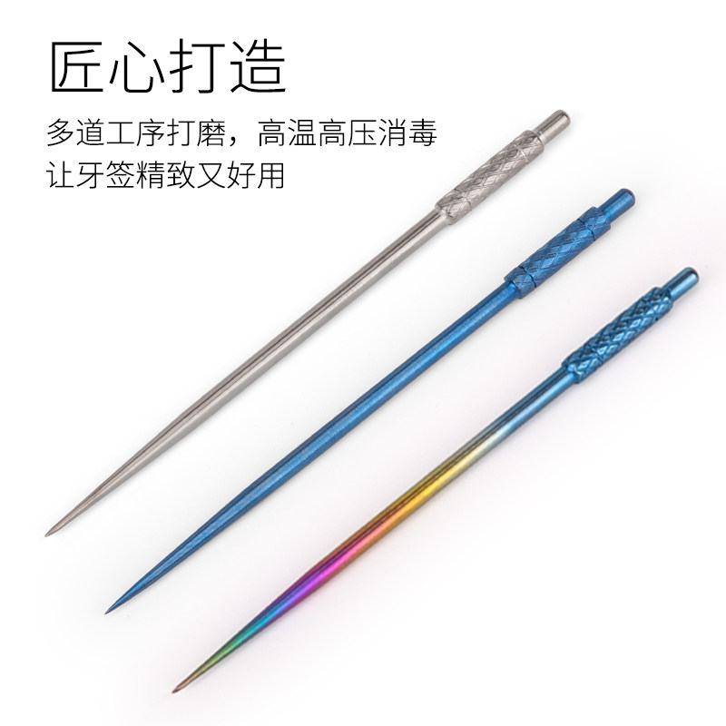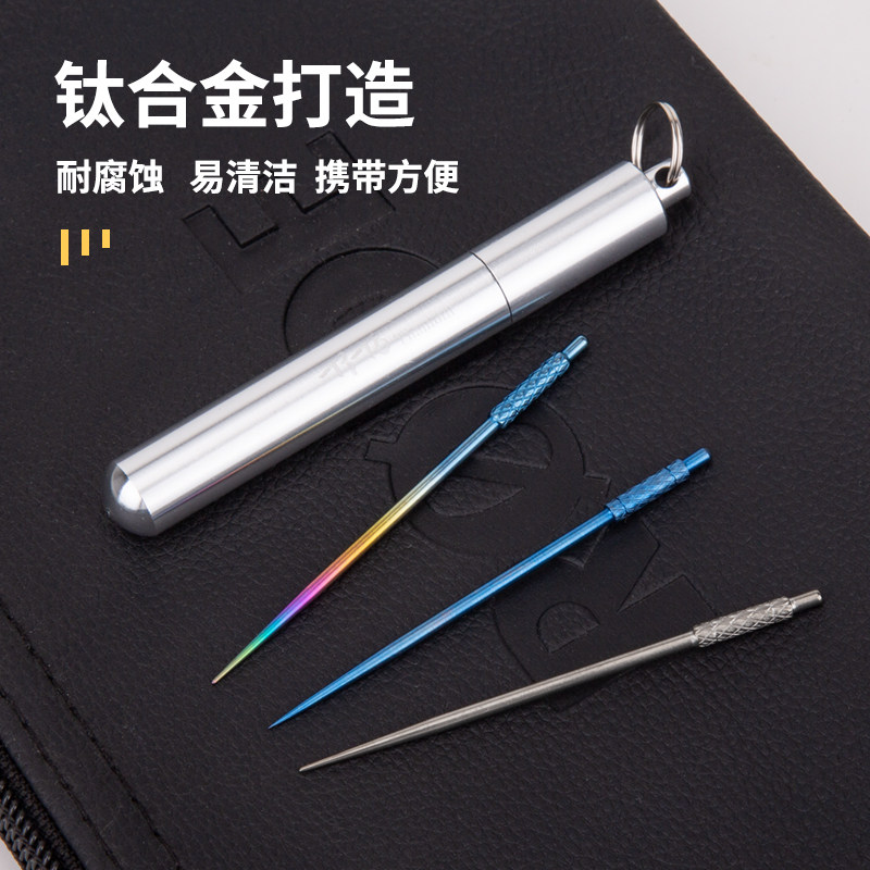 钛途TiTo钛合金牙签纯钛耳勺便携一体防身剔牙水果签叉牙签筒密封