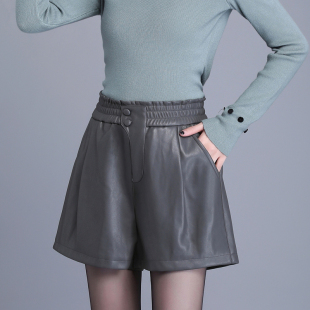 绵羊皮休闲显瘦皮靴裤 真皮皮裤 松紧高腰阔腿裤 2026春秋大码 女短裤